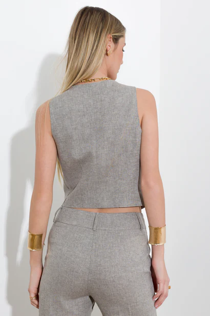 Versatile vestcrafted from premium linen-cotton, perfect for completing your trouser and jacket ensemble. The natural composition ensures breathability and comfortall day long, while the classic cutis suitable for a variety of occasions, from work to more formal events. An essential piece that elevates style with simplicity and elegance.