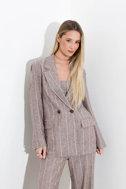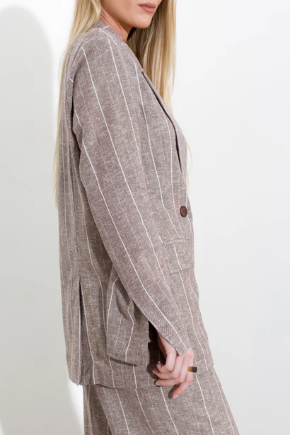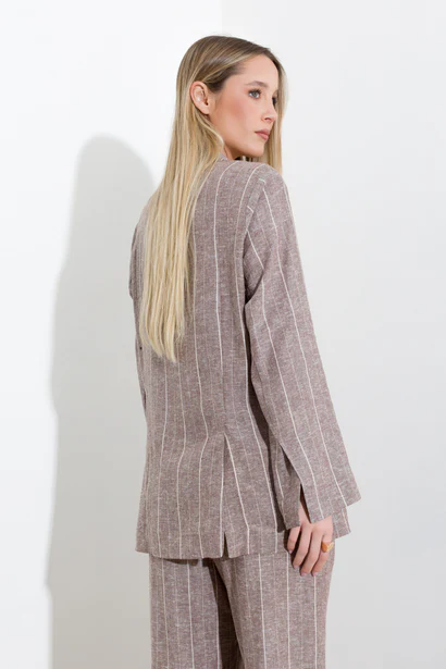 Blazer to match with its pinstriped viscose linen trousers and pinstriped viscose linen top